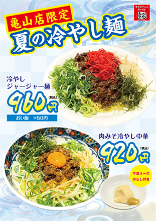 ゑびすや亀山店では、夏限定の「冷やし麺」が登場中!