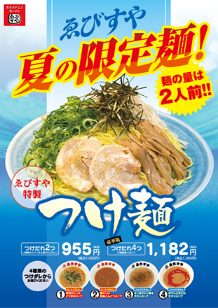 ゑびすや特製のつけ麺が今年も夏の期間限定メニューとして、6/1(月)から販売開始します。